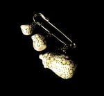spotty silver ceramic teaset on a silver plated kilt pin.