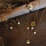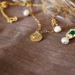 Made from 9ct eco gold and two beautiful freshwater pearls all hanging from a delecate trace chain.