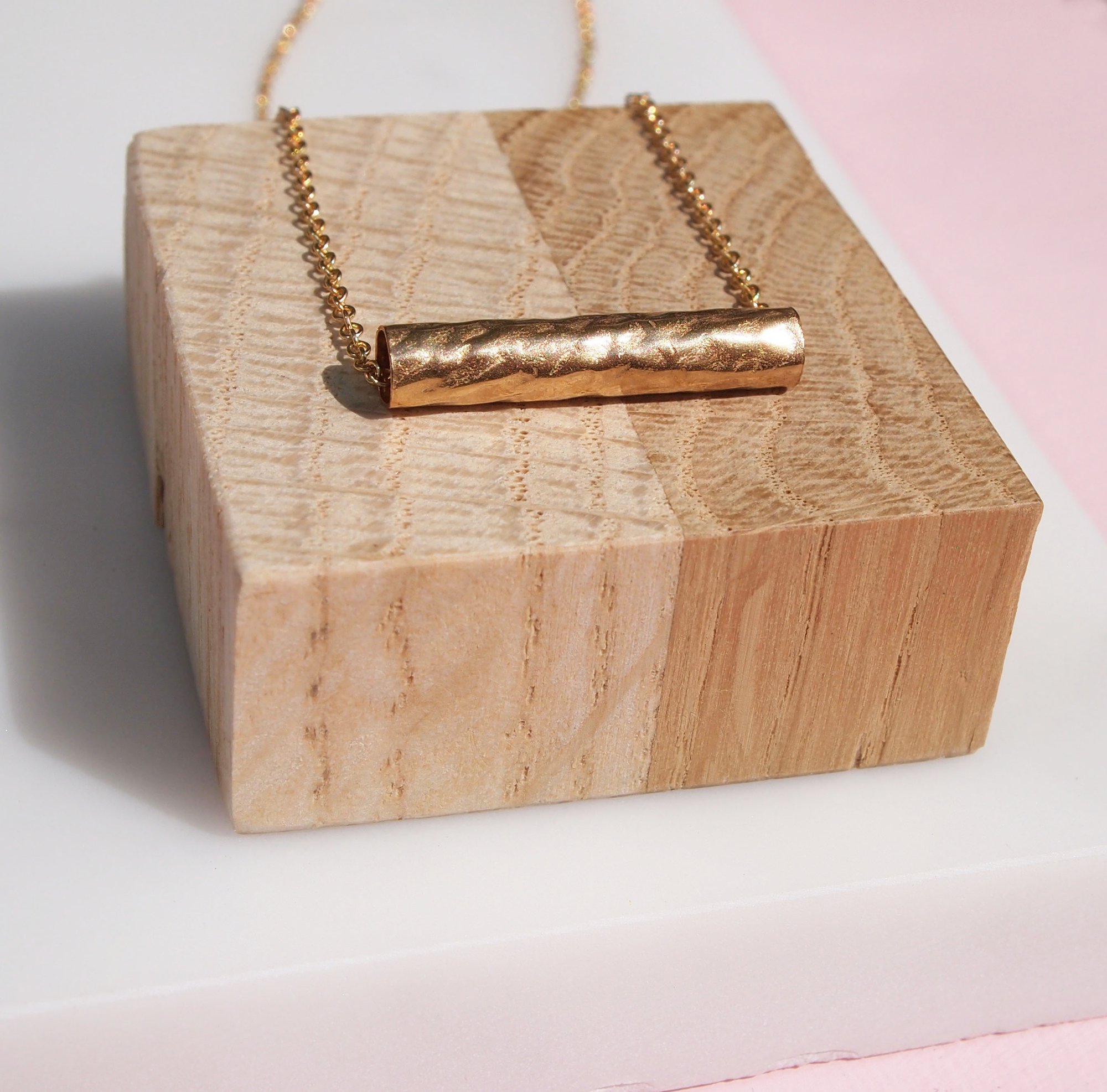 this piece has a gold filled chain with hammered gold barrel to make you look refined and delicate, the perfect gift for someone special.
