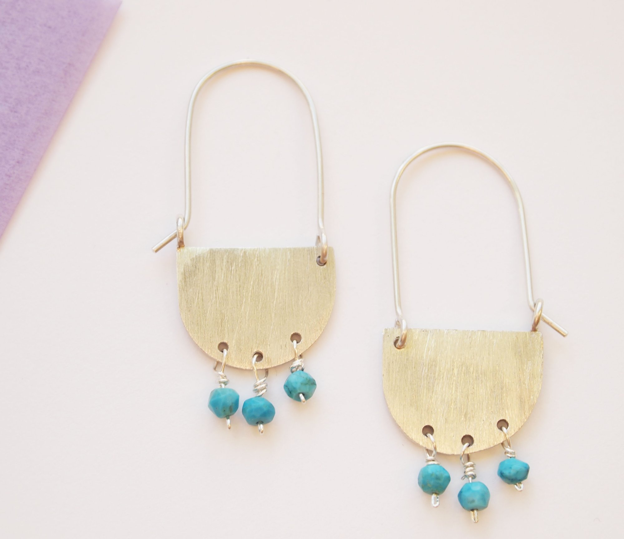 they each have 3 turquoise beads wired onto the bottom to give a bright splash of colour.
