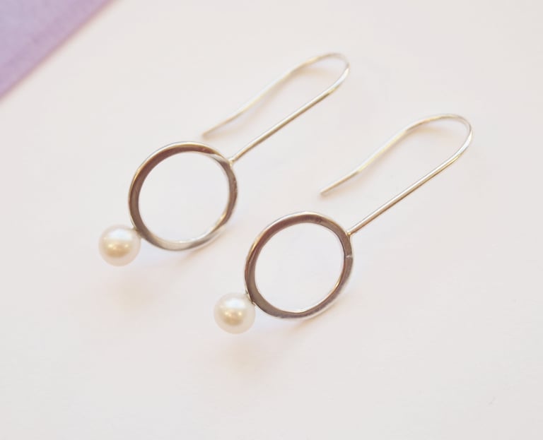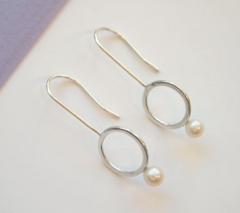 the circles are made from square wire which contrasts perfectly with natural round of the pearl and the round wire of the earwire.